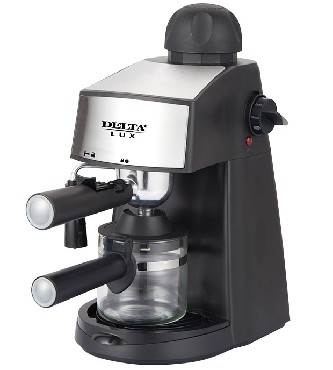 Мощность 800Вт. Вместимость 240мл. Давление пара 5 Бар. Корпус из высококач. пластика. Жаростойкий стекл. резервуар д/кофе. Шкала уровня воды. Свет. индикатор работы.Функция пригот-я Капучино. Функция Пауза. Защита от перегрева.