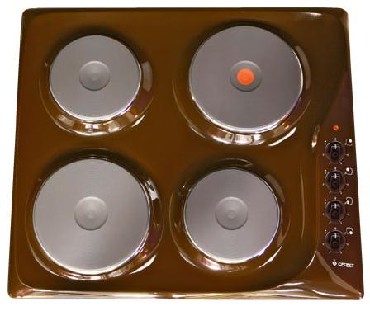 Поверхность Варочная Электрическая. ( эмалированная, 4 однозонные чугунные , 1 экспресс-конфорка конфорки, индикатор включения и выключения, механическое управление поворотнымиручками с 7-ступенчатой регулировкой температуры. Цвет коричневый